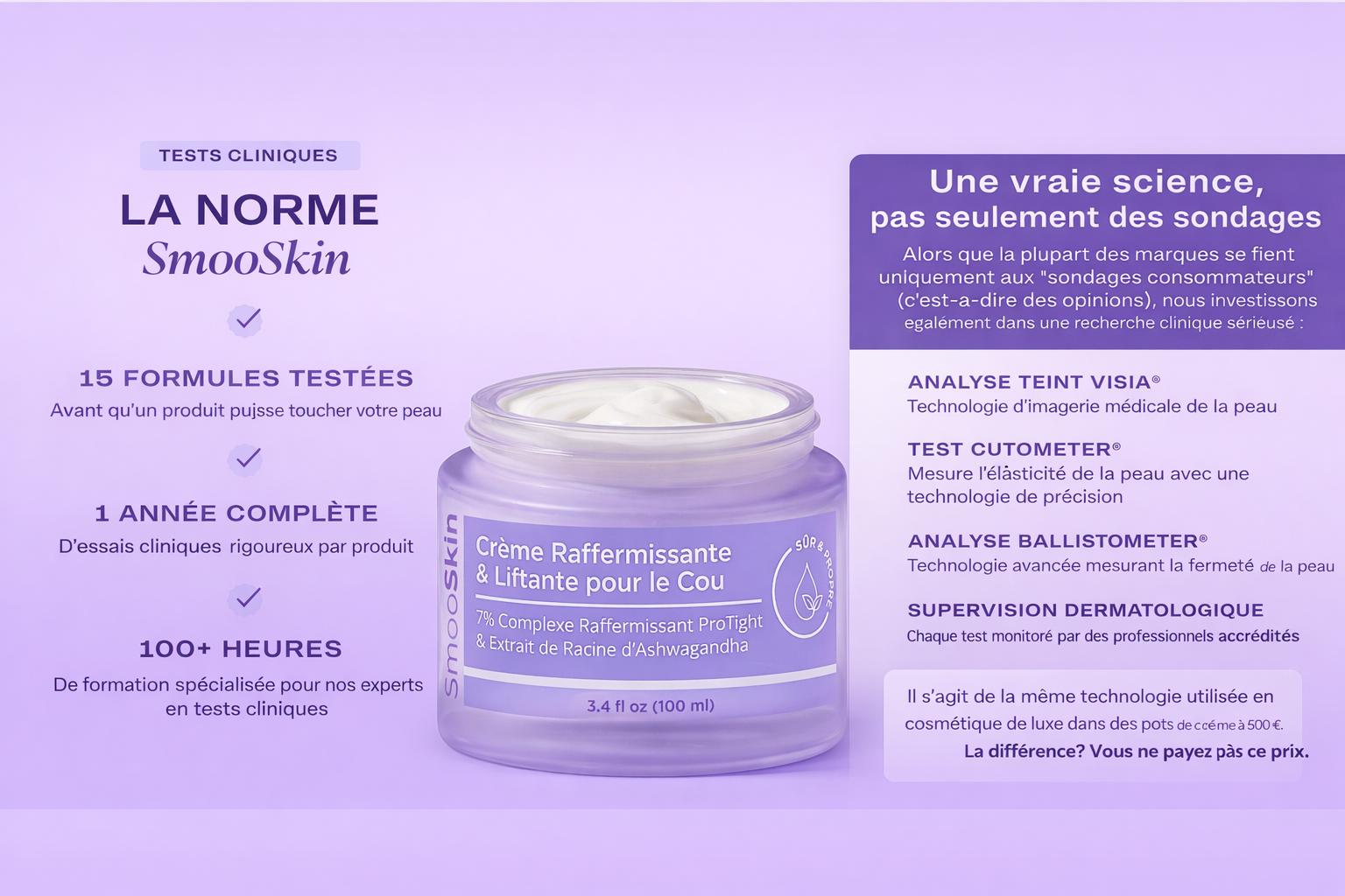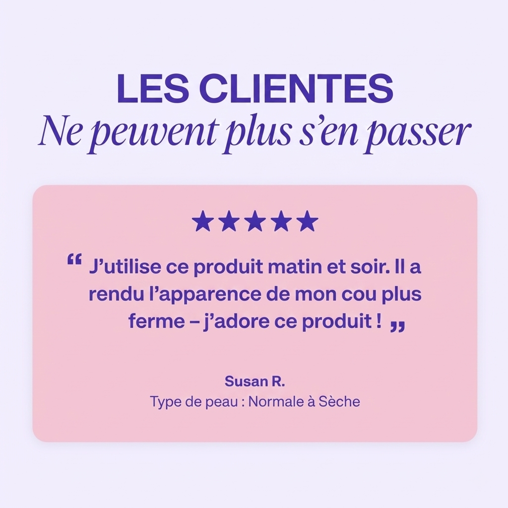 des utilisateurs affirment que leur peau se sent plus lisse et plus ferme après la première application de la Crème Fermeté du Cou.
