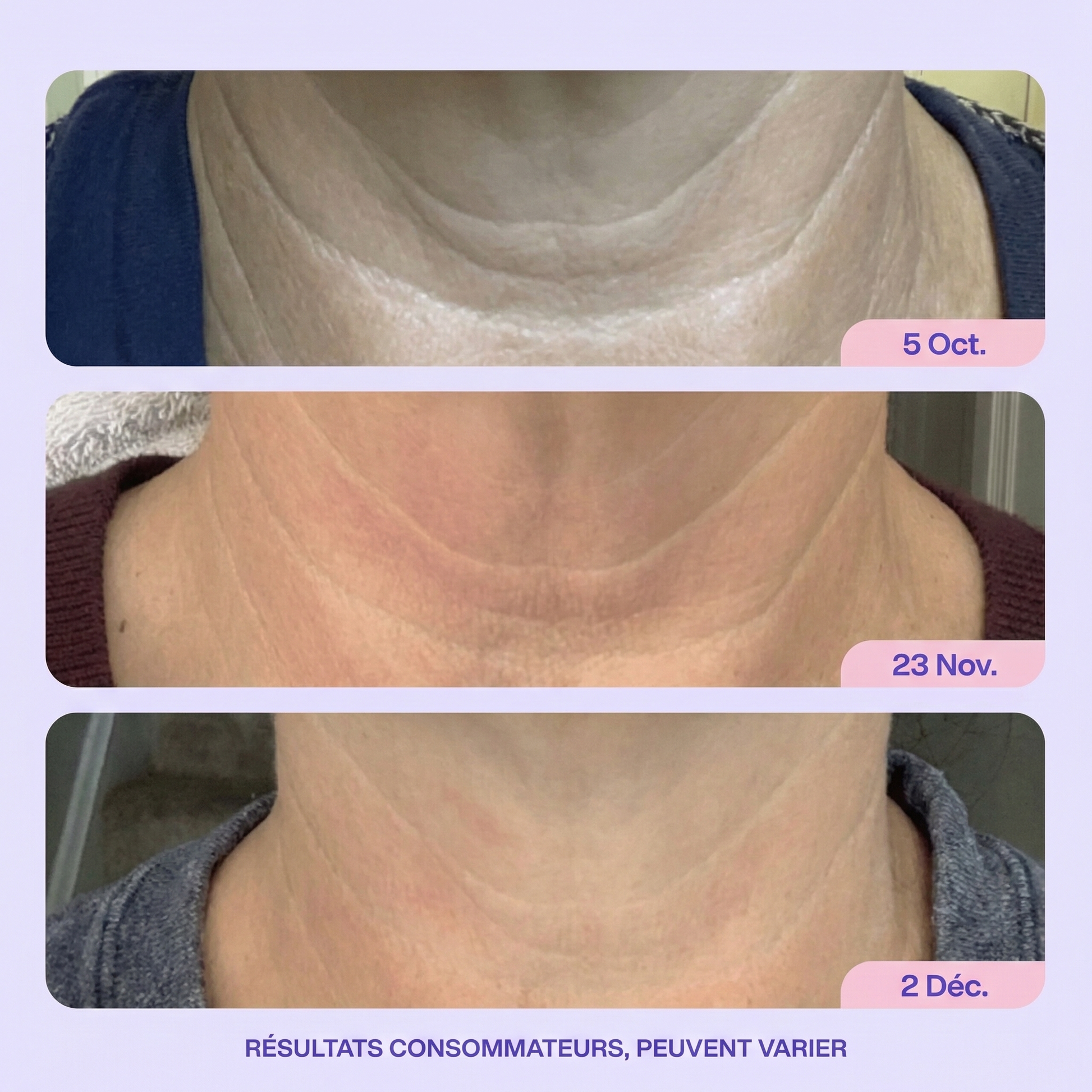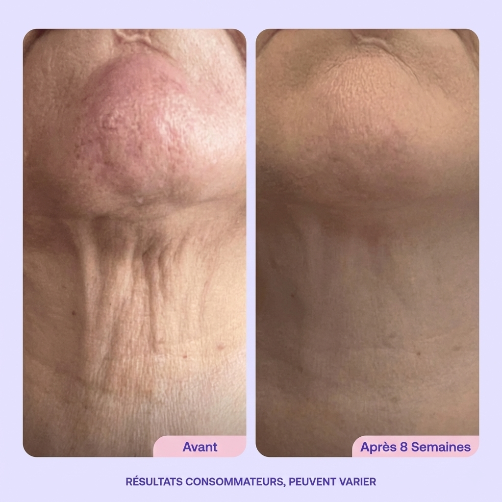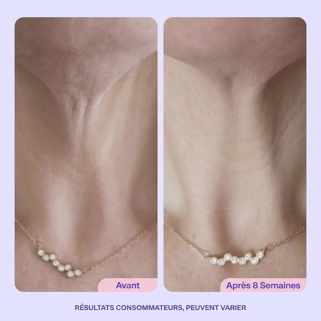 Clara Dupont Decembre 2025Verified BuyerUne peau plus tonique et des ridules atténuéesTrès satisfaite du produit, ma peau est plus tonique et les ridules diminuent. Je la recommande sans hésiter !Un cou plus ferme et lisse en 4 semaines - ou remboursé Was this helpful? 0 0